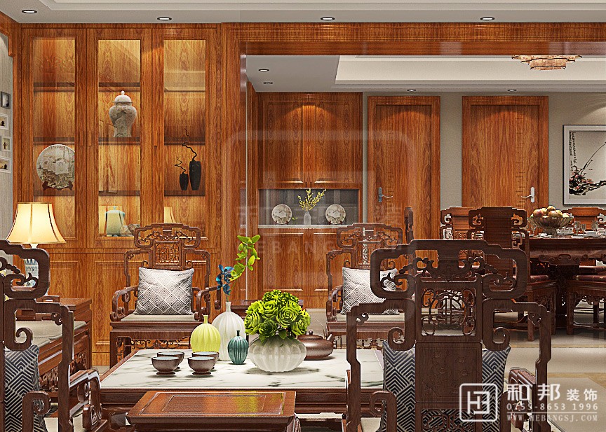 本方案整體以中式風格為基調(diào),點、線、面的完美結(jié)合,同時,在某些地方配上一些其他色彩的點綴,使人感覺到整潔舒適,美觀大方而不失檔次, 不會讓人感到單調(diào)、簡單。