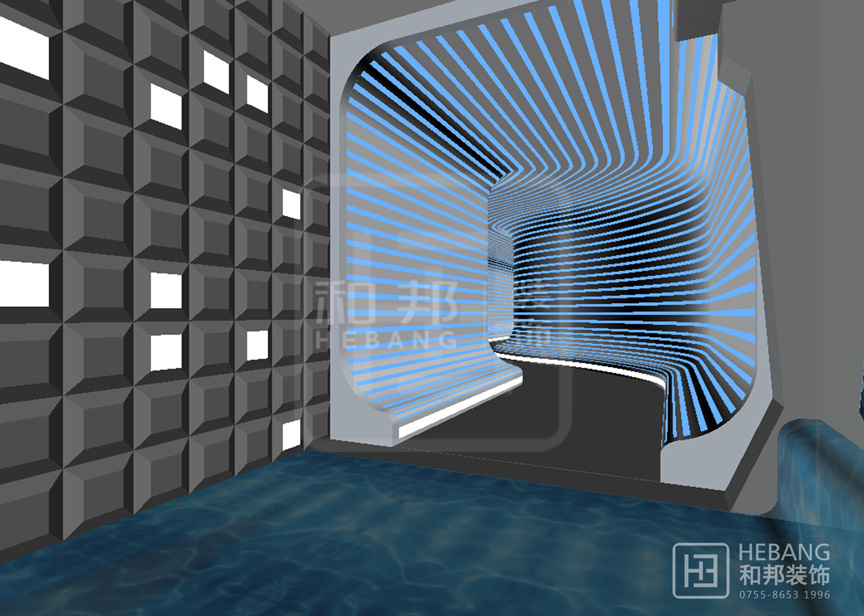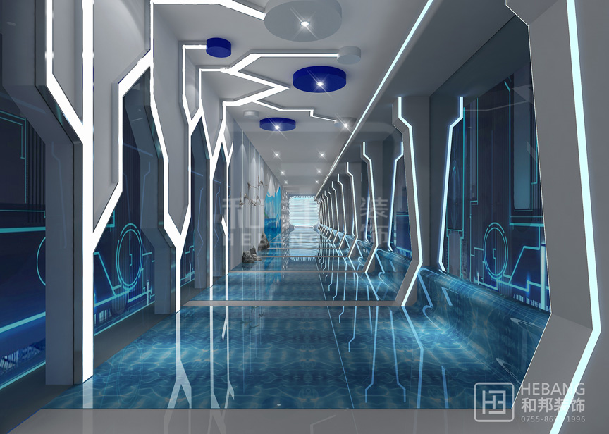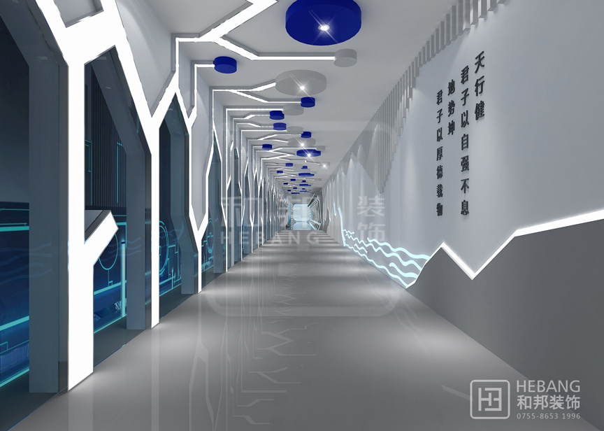 | 設(shè)計說明 | 藍(lán)色貫穿于整個設(shè)計前后,讓人感覺干凈整潔。墻壁飾有的古代名言警句以及極富現(xiàn)代科技感的線條,行走在其中,像是穿越了古今,讓人流連往返。 | ||||
