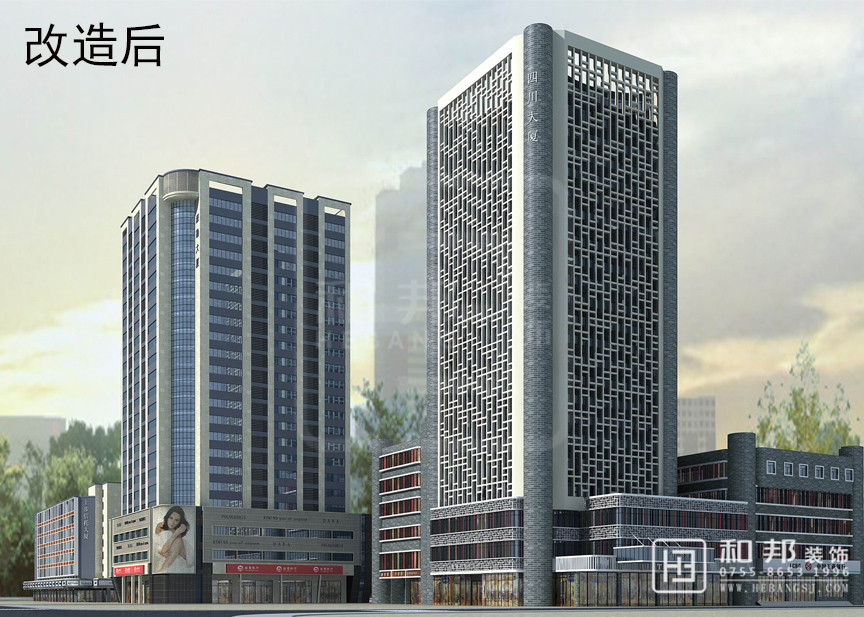| 設(shè)計說明 | 本設(shè)計統(tǒng)一了兩棟樓的外觀,利用這些調(diào)和而穩(wěn)定的色調(diào),顯示整體空間很整齊。 | ||||