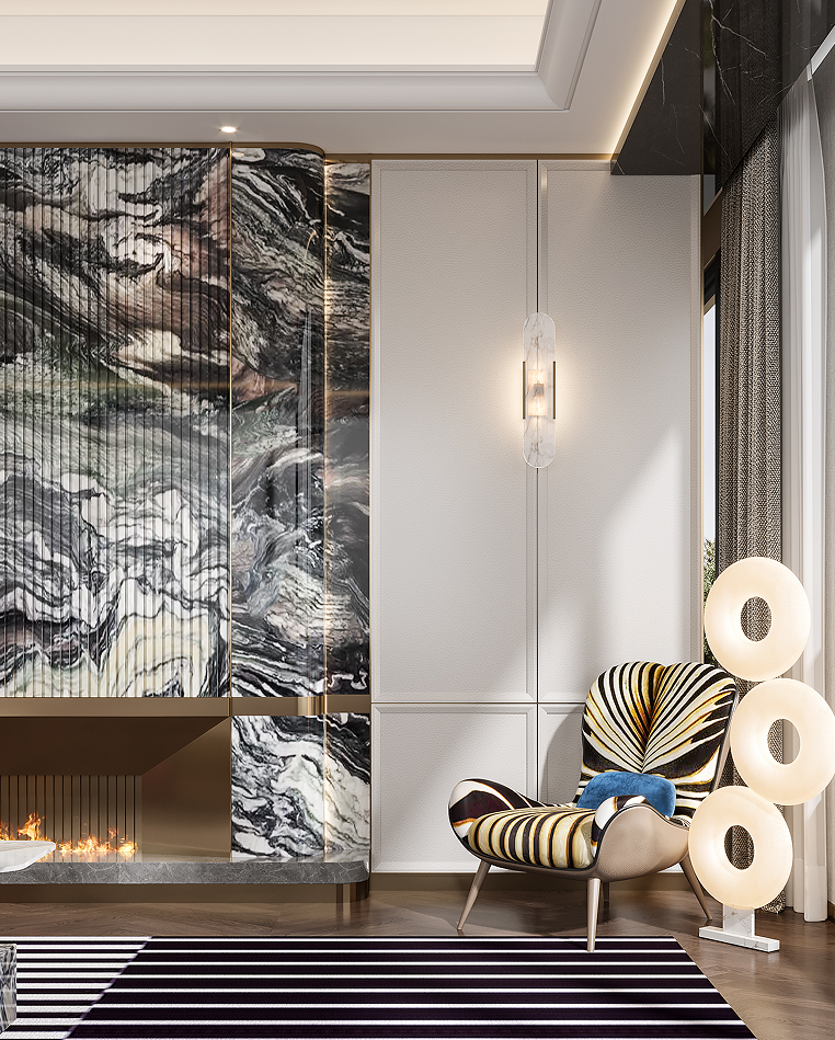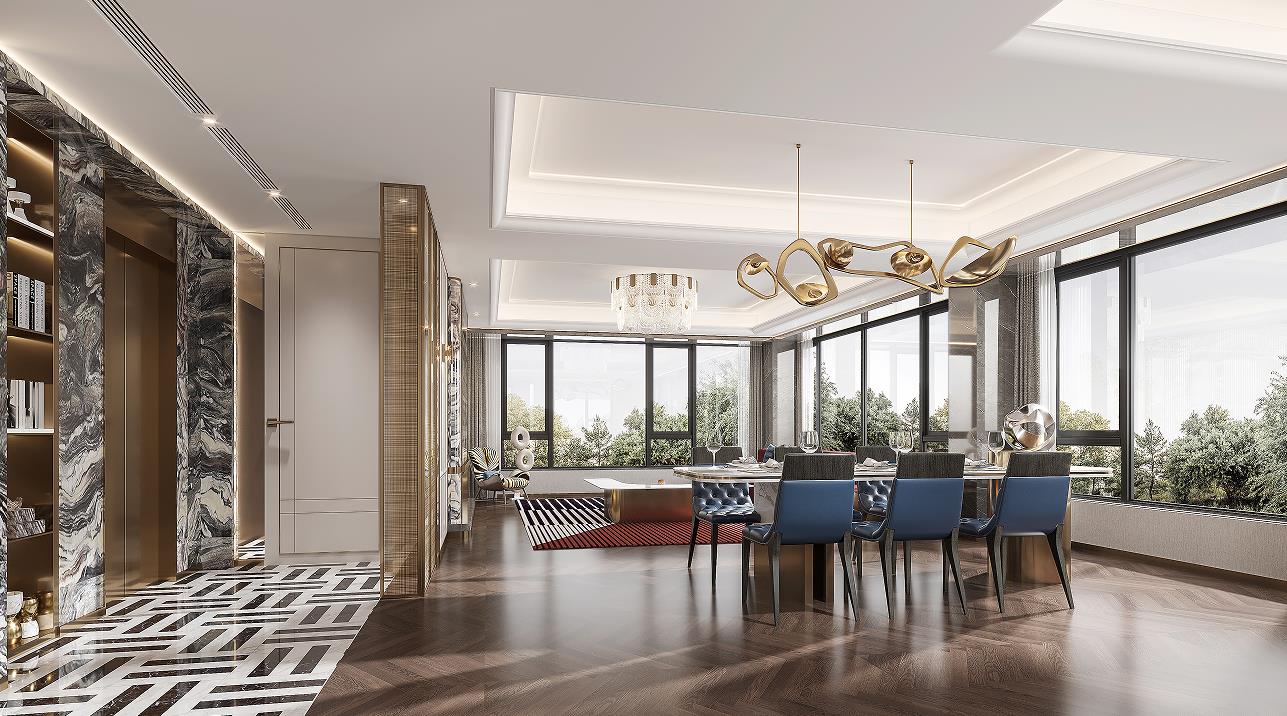 在這個(gè)項(xiàng)目中,我們以當(dāng)代精英階層的人群畫像為定位,延伸藝術(shù)與審美生活的當(dāng)代形式,以設(shè)計(jì)作為切入生活的路徑,基于線條、材質(zhì)與形式的差異化表達(dá),探索當(dāng)代理想人居的嶄新面貌。