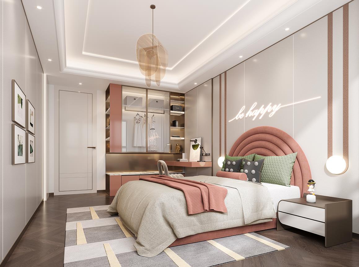次臥,在家人們獨(dú)自的臥室空間中,我們針對(duì)不同成員的使用習(xí)慣,進(jìn)行空間元素、材質(zhì)與色彩的調(diào)配。整體色調(diào)以淺色素雅為主,營(yíng)造靜謐平和的空間基調(diào)。
