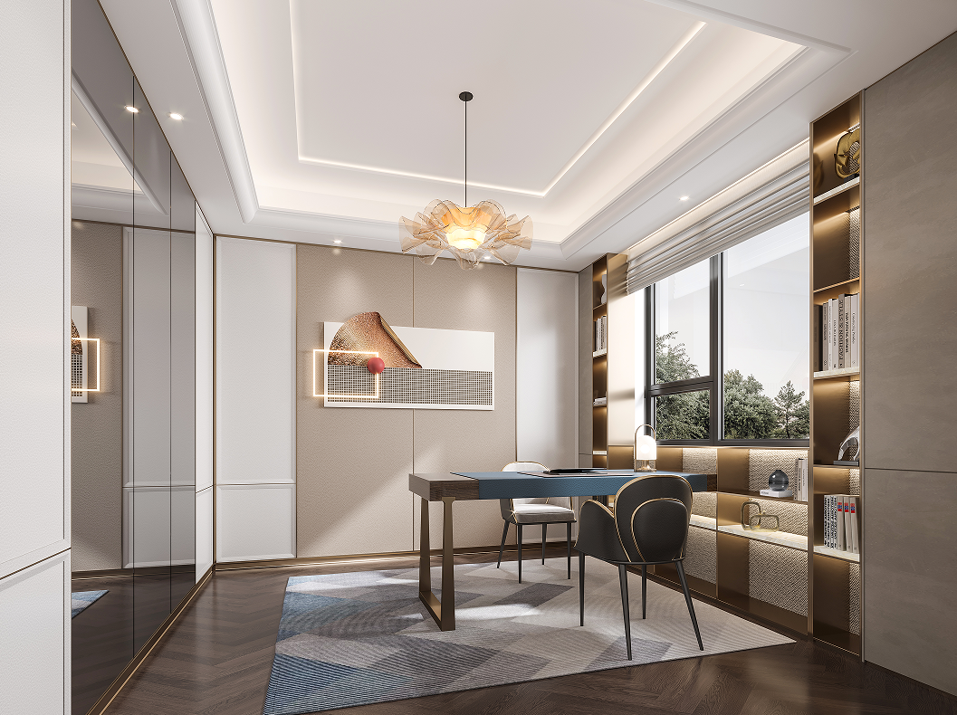 負(fù)層主要工作臺(tái)作為空間的穩(wěn)定面,造型簡(jiǎn)潔飄逸的燈飾,猶如流星的痕跡,靈動(dòng)跳躍在空間之中,精致優(yōu)雅且不失穩(wěn)重。